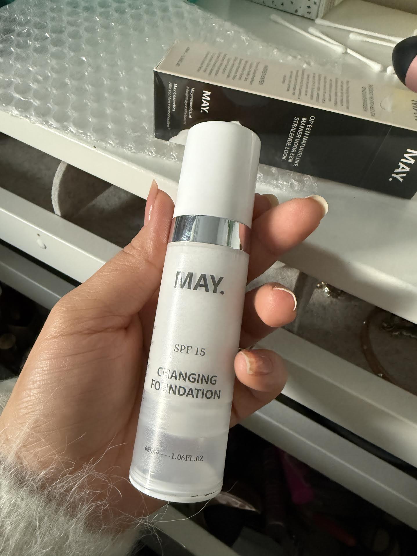 De May Changing Foundation is speciaal ontwikkeld om zich aan te passen aan verschillende lichte tot medium huidskleuren.